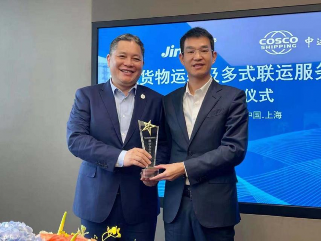 晶科能源CEO陈康平(右)与中远海运集团副总裁张炜(左)