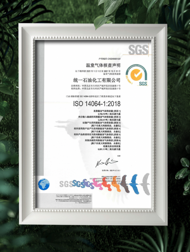据悉,目前,统一正加紧推动生产制造全流程低碳目标,通过打造“统一绿色工厂”计划,与专业认证机构合作,全面启动工业碳核查,制定统一“碳达峰”“碳中和”行动方案。值得一提的是,近日,在经过一系列碳核查后,统一已顺利通过ISO 14064-1:2018认证,获得由国际权威第三方机构SGS颁发的温室气体排放核查声明证书,这也标志着统一润滑油碳排放管理能力已达到国际标准,为行业的绿色低碳发展起到了良好的示范作用。
