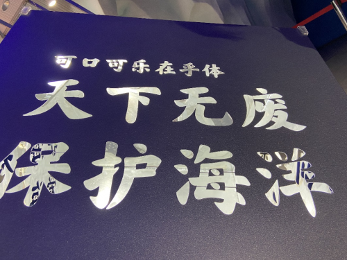 展览分为两个展区,在海豚区前,由可口可乐在乎体、青岛海昌极地“七萌团”融合的光影秀,天下无废、保护海洋等文字,配合“七萌团”的可爱形象,光影交错的投射在场馆内。在北极熊展区,用可口可乐在乎体雕刻出的文字展墙,配合可口可乐中国推出回收塑料瓶再造的最新产品——“表情包”,据悉,这款“表情包”是由8个塑料瓶再生而来,是可口可乐中国“天下无废”可持续发展理念的一个全新产物,让废旧塑料瓶可以正确回收再利用,实现“只要放对、天下无废”。